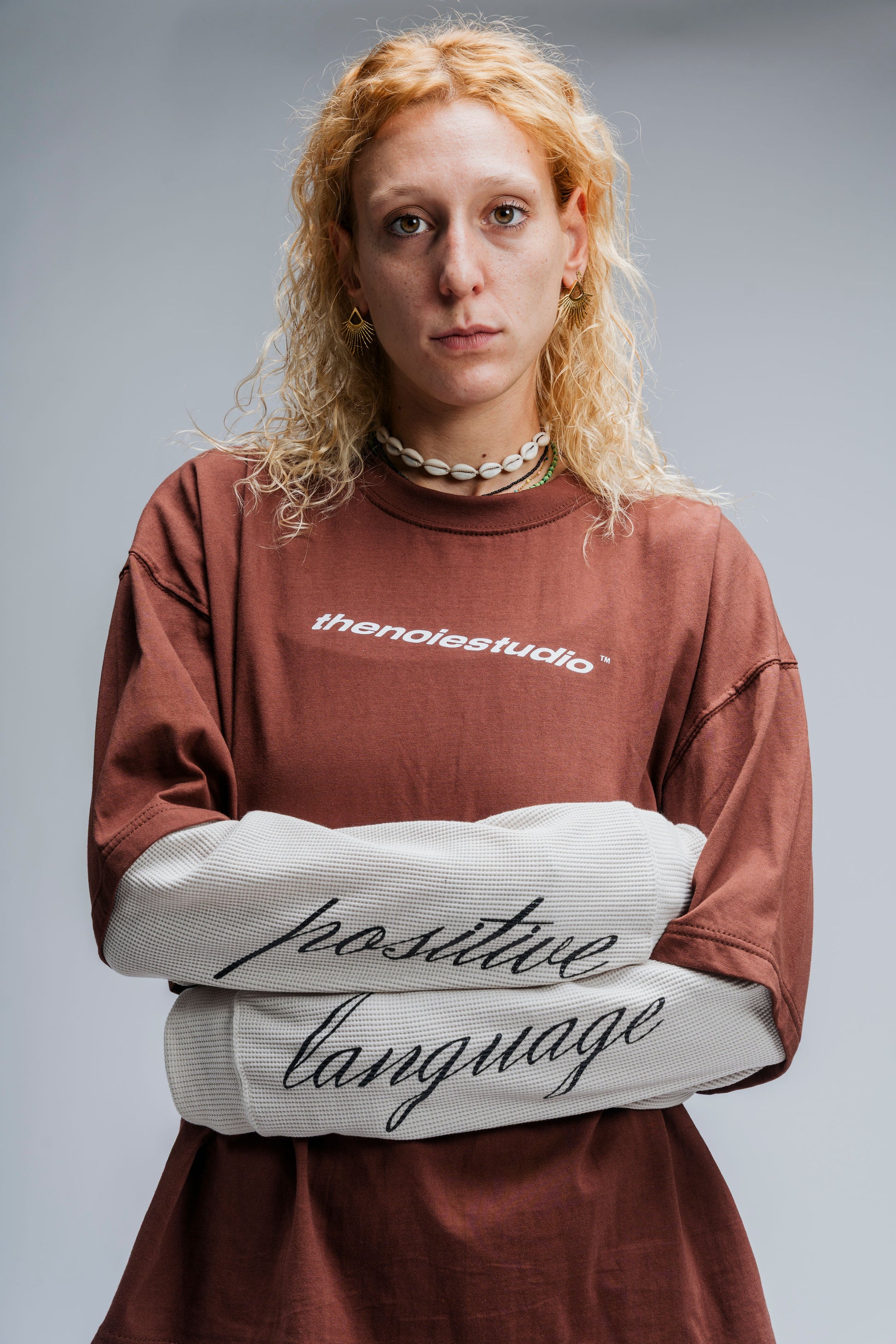 Maglia noie a doppia manica realizzata con un doppio tessuto in cotone con la parte della manica lunga in tessuto traspirante e polsini. Stampa dei dettagli in serigrafia.